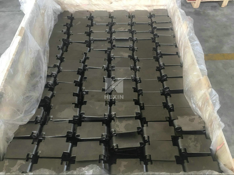 the cast link belts components are made from investment casting method, normally by 1.4848,1.4849 ,used in the continuous heat treatment furnaces.